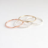 The classic stack set - beautiful, dainty and minimalist. Mix and match metal options to create a one-of-a-kind stack made just for you. Each ring is handmade, in your choice of precious metals, including sterling silver, 14k yellow gold fill and rose gold fill. Elevate your everyday wardrobe with this versatile, classic set.