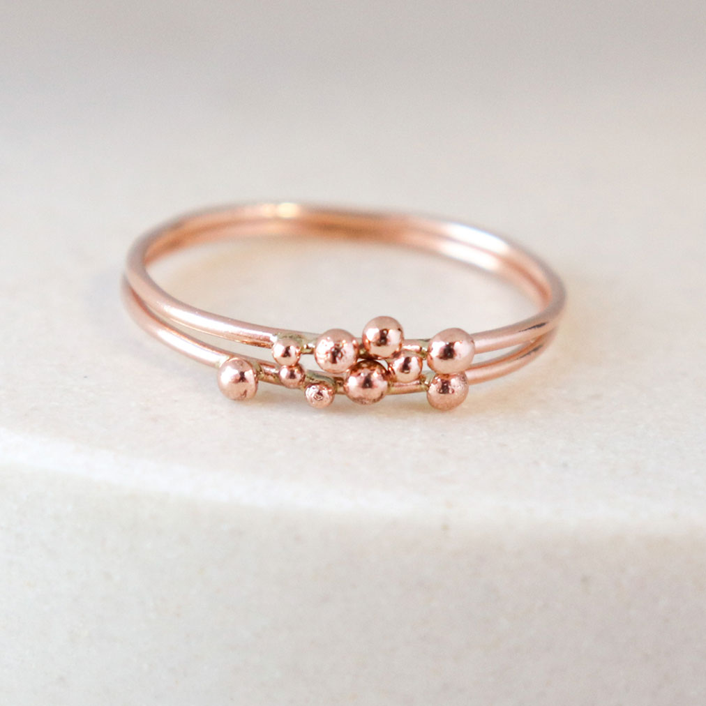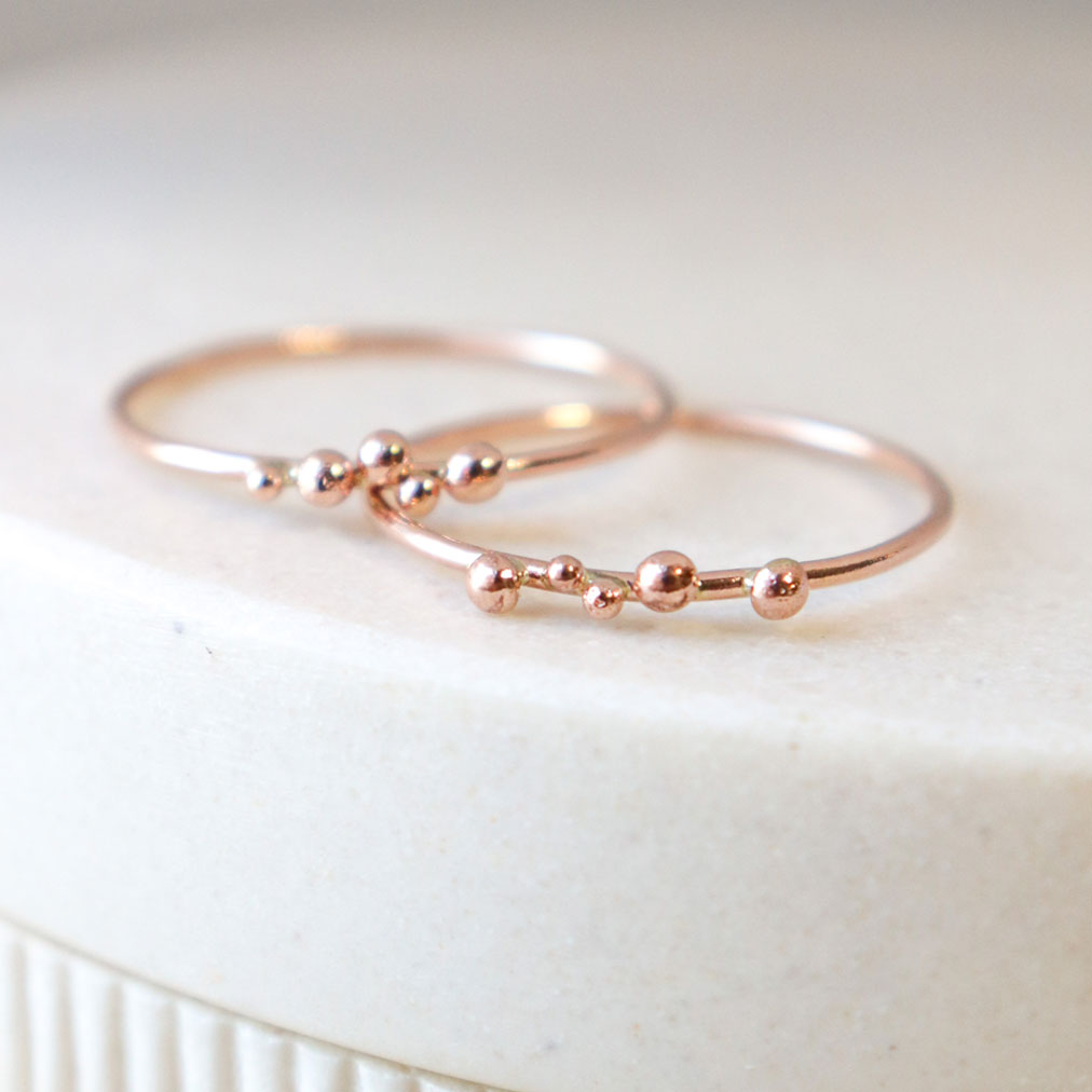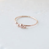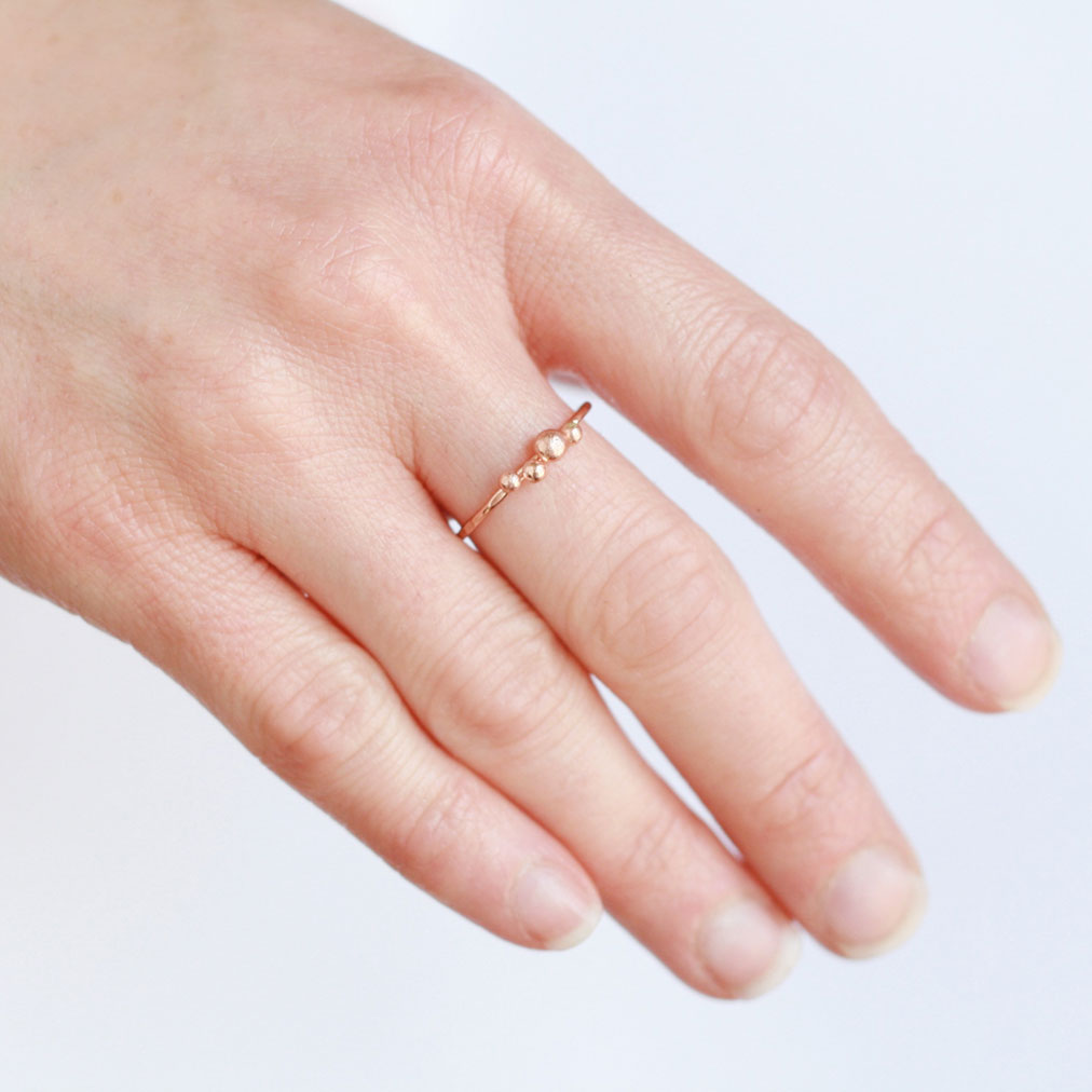 Represent your loved ones in a simple, meaningful way. Vary your droplets in size and quantity to represent parents, grandparents, kids and / or angel babies. The droplet ring is designed by you, to tell your individual story. Beautiful as simply a statement piece, or select one droplet for each child or grandchild, etc. This makes a wonderful mother's ring. Like all of our jewelry, you have several metals to choose from! The ring band is available in sterling silver, yellow gold fill, rose gold fill, solid 14k yellow or rose gold. Droplets are ALWAYS luxuriously solid 14k gold for either the gold fill or solid gold band! The sterling silver band features solid sterling silver 925 droplets.