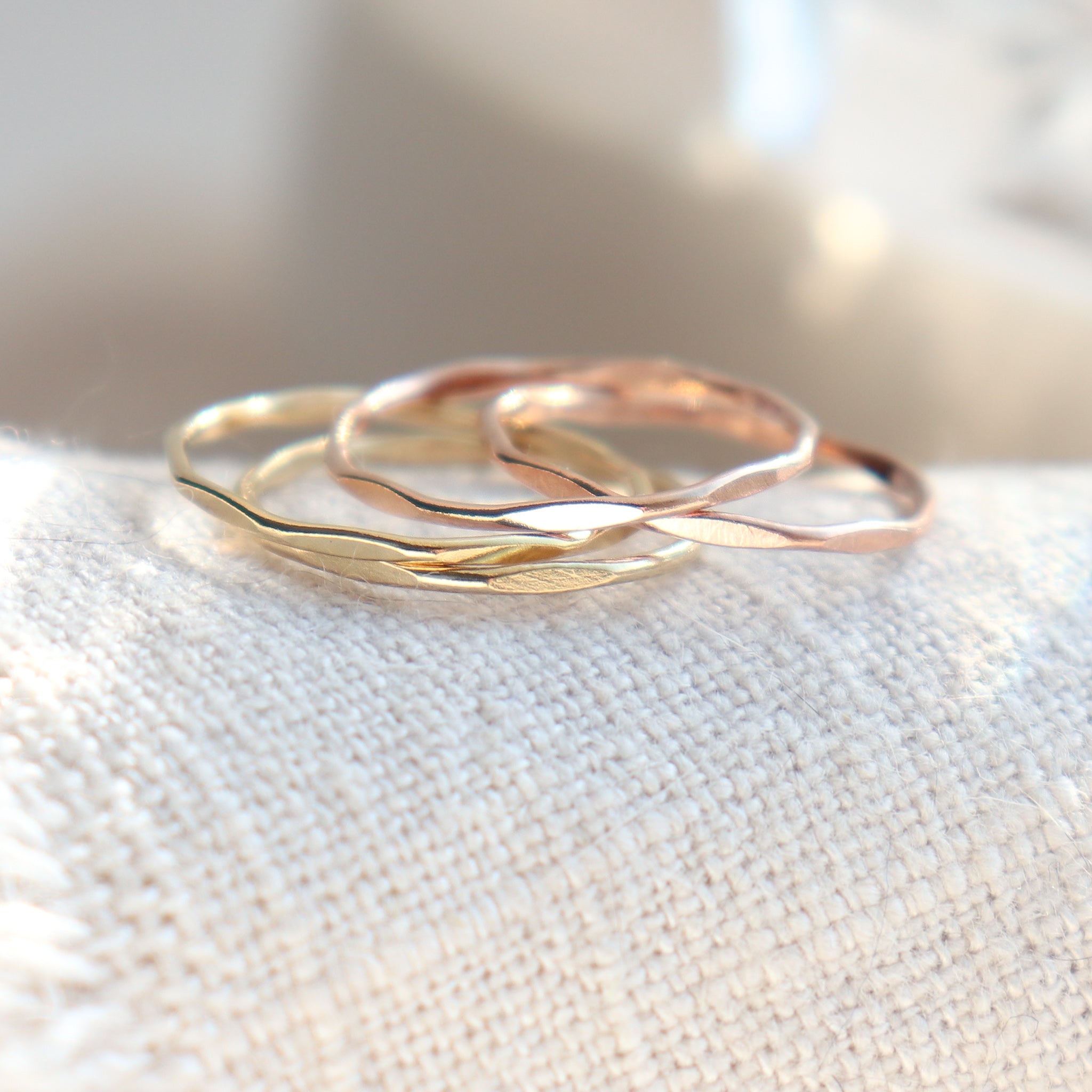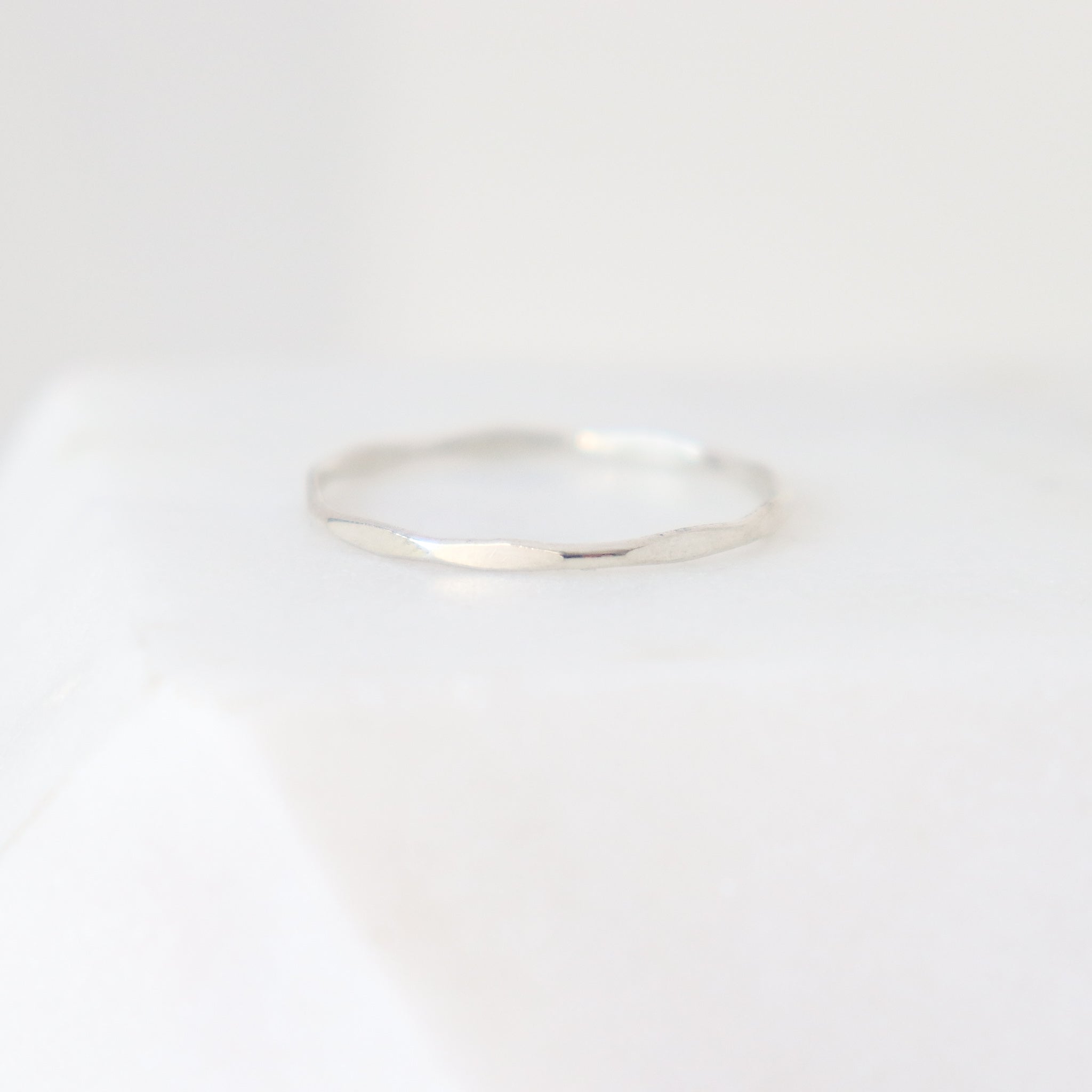 Our hammered textured stackable ring adds sparkle to your stack; this one's in solid platinum 950. Explore all of our stackable rings, handmade to order in an array of precious metals. Stackable finger rings are just right for wearing alone, as a knuckle ring or as a set. Select this band in solid gold or platinum as a sleek wedding band!