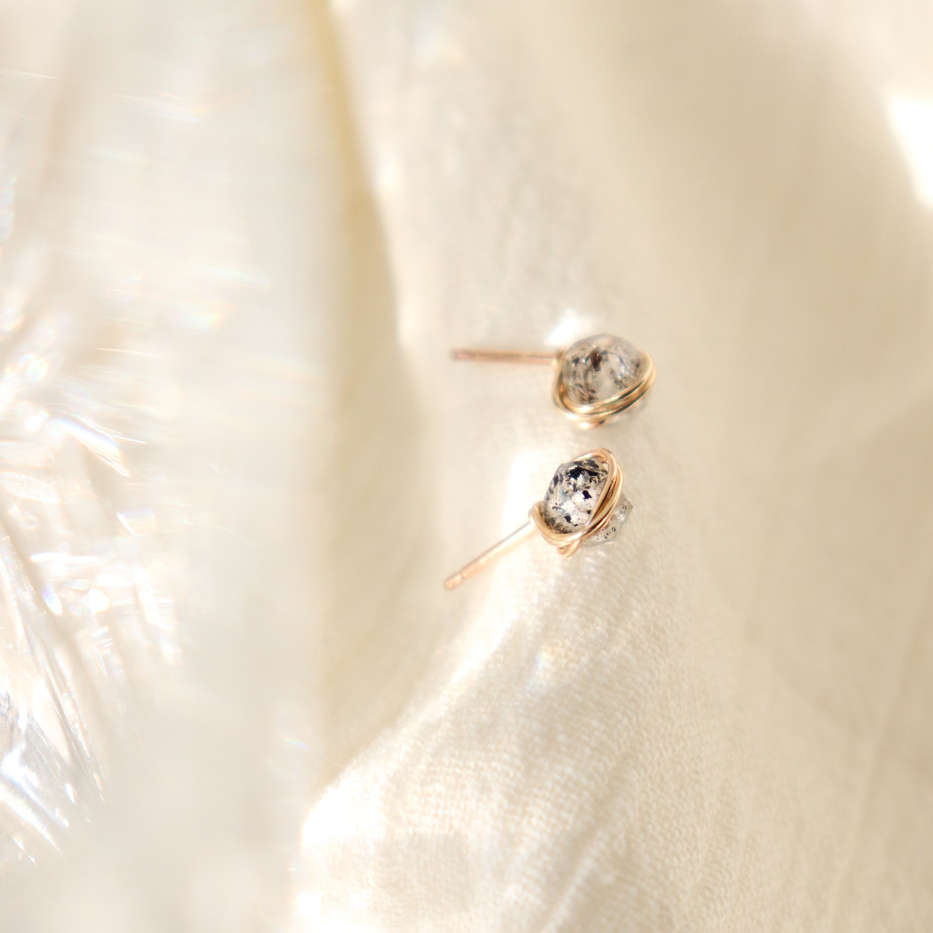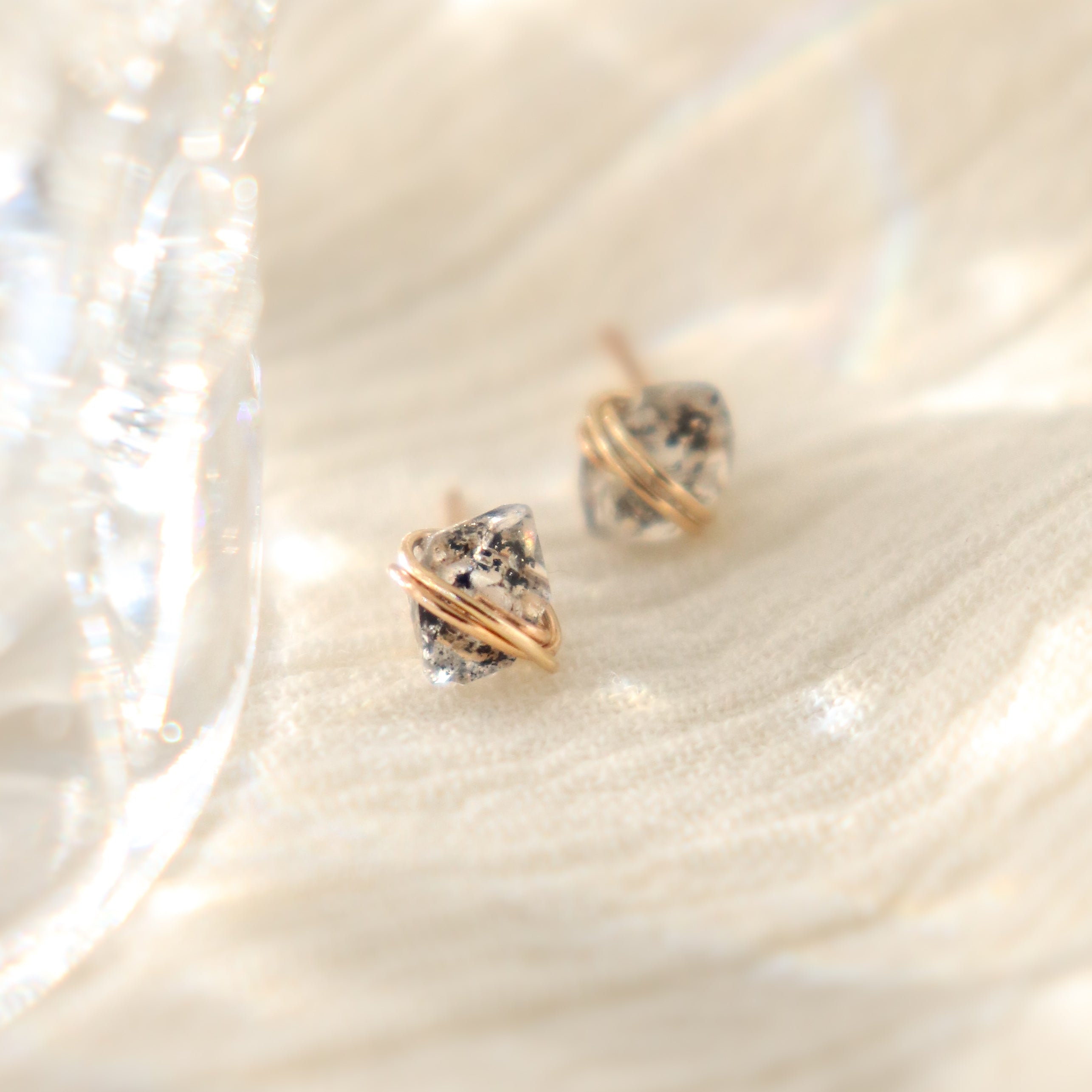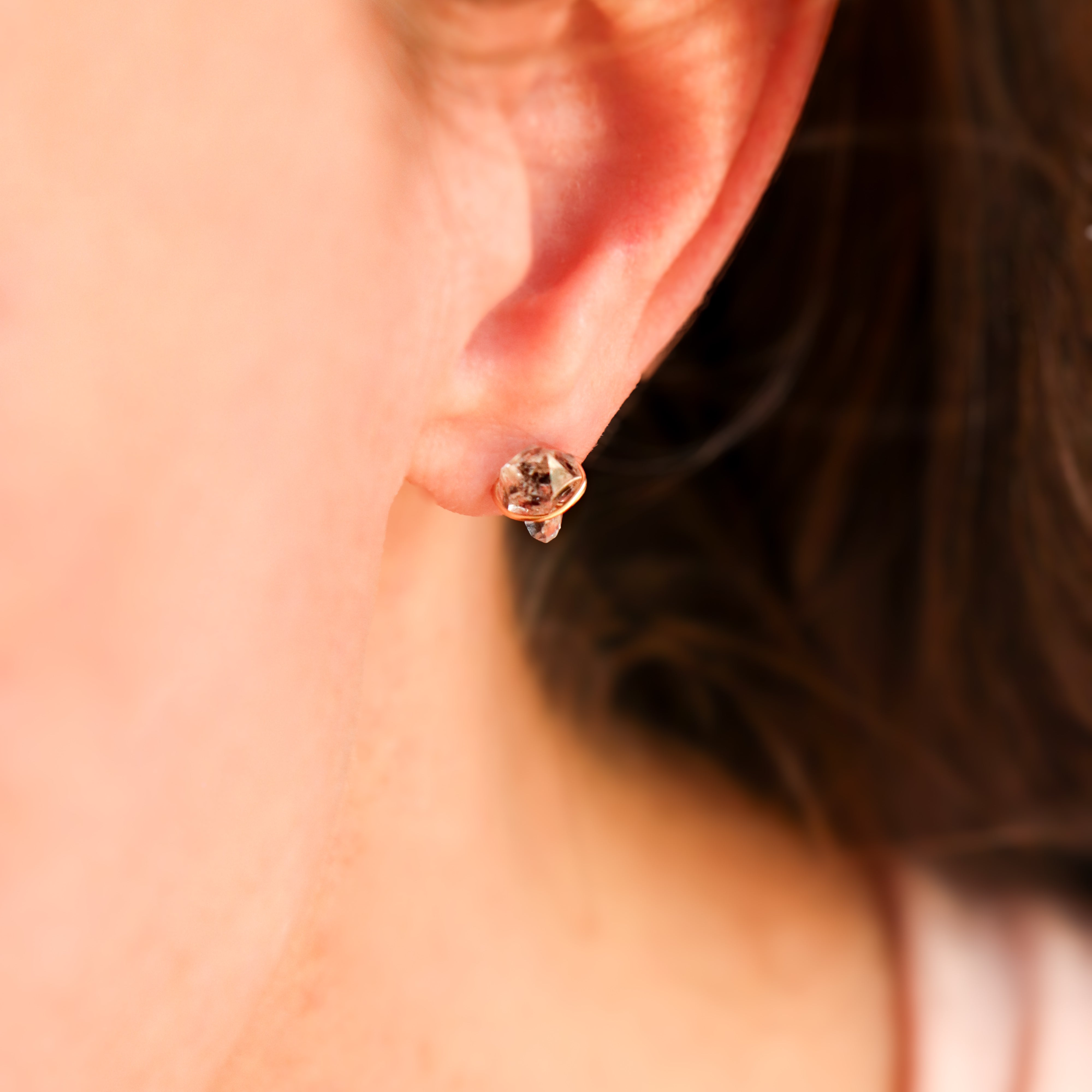 These stunning Herkimer Diamonds come out of the ground looking exactly this gorgeous! Herkimer Diamond is an extra-hard type of quartz that is naturally double terminated with 18 faceted sides, regardless of stone size. We source the clearest Herkimers for extra sparkle. Some have black anthraxolite inclusions, too. We're obsessed; all the variations make each pair extra unique and interesting! We've meticulously matched our Herkimers to create earring pairs. Sets will vary slightly in size and shape from one pair to the next.