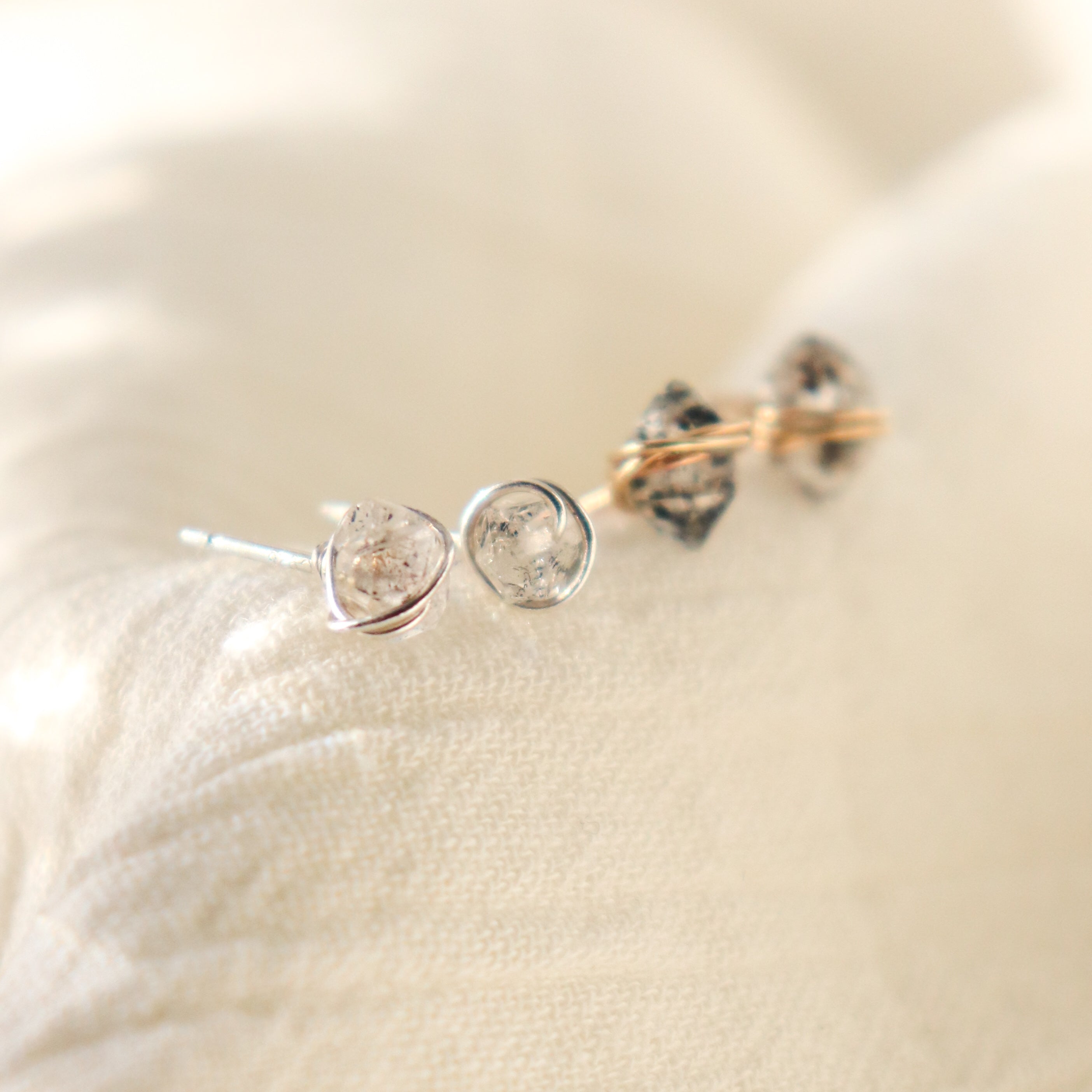 Herkimer Diamond Quartz Stud Earrings in Silver
