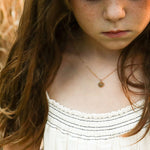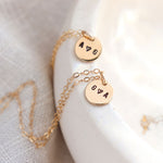 Petite letters can be worn close to your heart, for those you love! Hand stamped on a thick disk, you select sterling silver or 14k gold fill letters & chain. Beautiful, subtle and unique. The diminutive size works perfect for girls too.