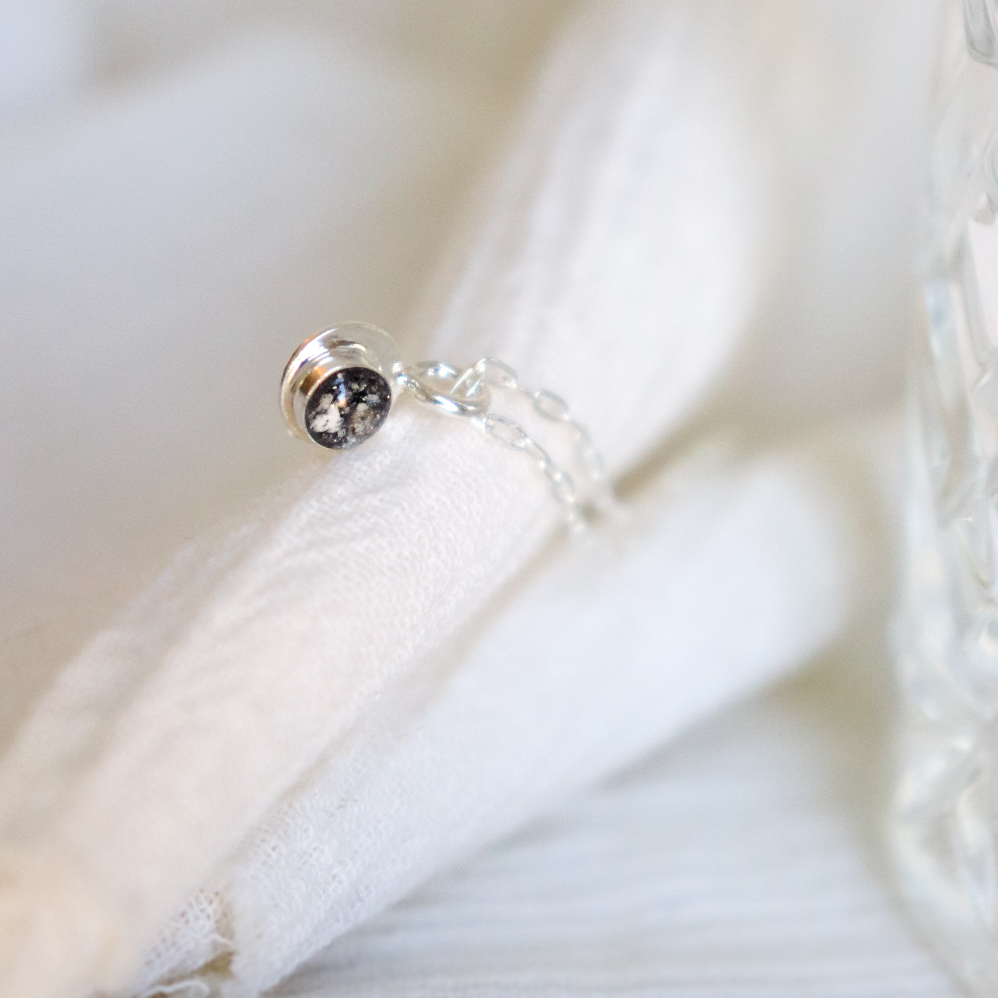 Our custom resin cremains necklace lovingly holds your special someone close to your heart, right where they already are. Please read the entire description, all the way to the end, as we answer many questions about the process here! If you would like color added to your necklace, scroll to the glitter color options photo. If you add glitter, we can give the necklace a very saturated look which will mostly cover the look of your ashes, so just you will know the ashes are there. Or, we can do a lighter amount of color and make sure there are some of the natural ashes visible in your necklace. Glitter is optional and this necklace looks lovely with just the natural ashes, too!