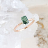 One of our best sellers! Moss agate is known to be grounding, balancing and promotes abundance. Moss agate is an alternative May birthstone. This is also the perfect stone for the Gemini, Aquarius or Virgo. Most closely associated with the heart chakra, moss agate is said to usher in abundance and balance extreme emotions. Perfect as a unique engagement ring!