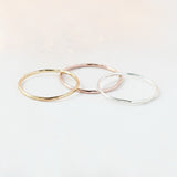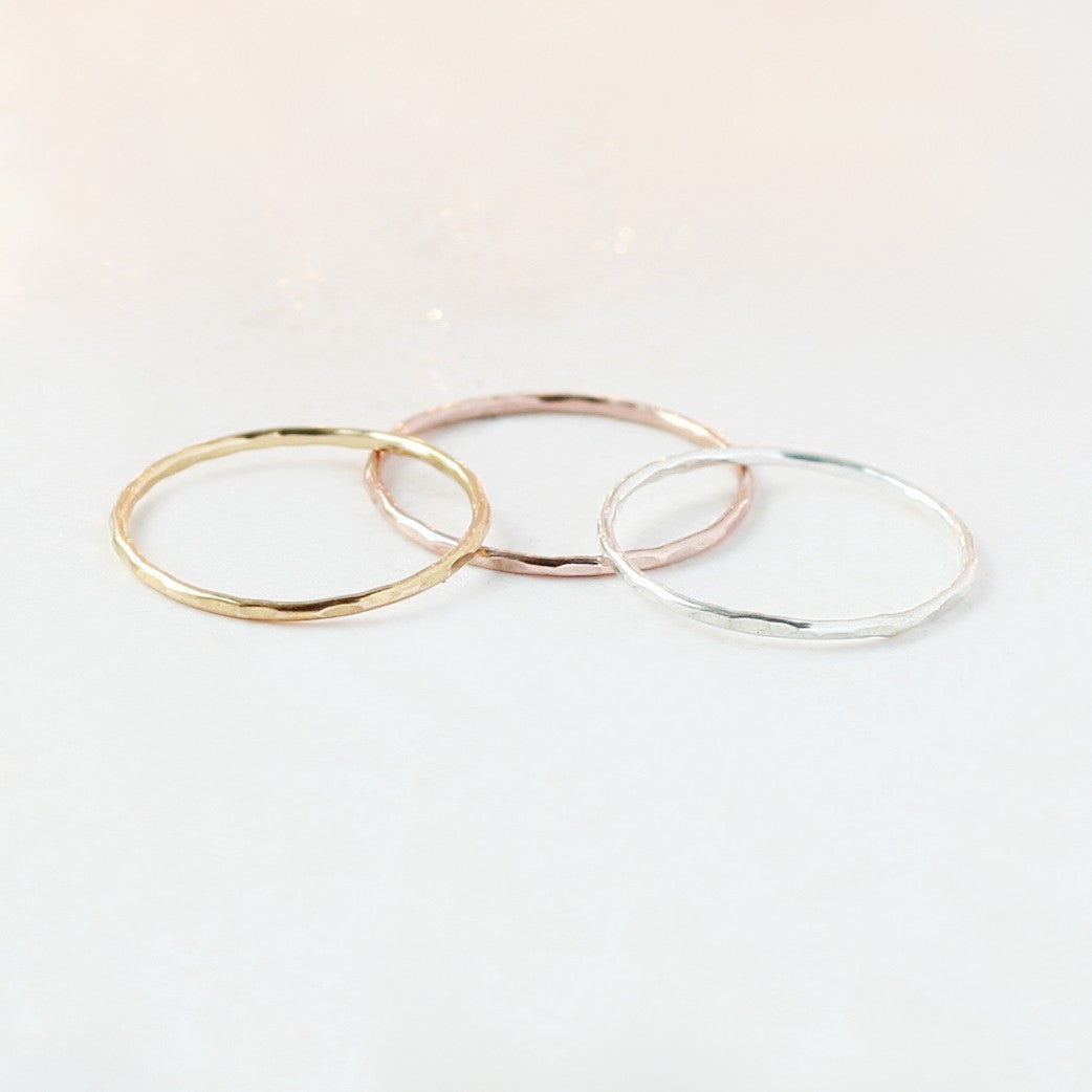 Our pebbled textured stackable ring adds sparkle to your stack; this one's in 14k gold fill. Explore all of our stackable rings, handmade to order in an array of precious metals. Stackable finger rings are just right for wearing alone, as a knuckle ring or as a set. Select this band in solid gold or platinum as a sleek wedding band!
