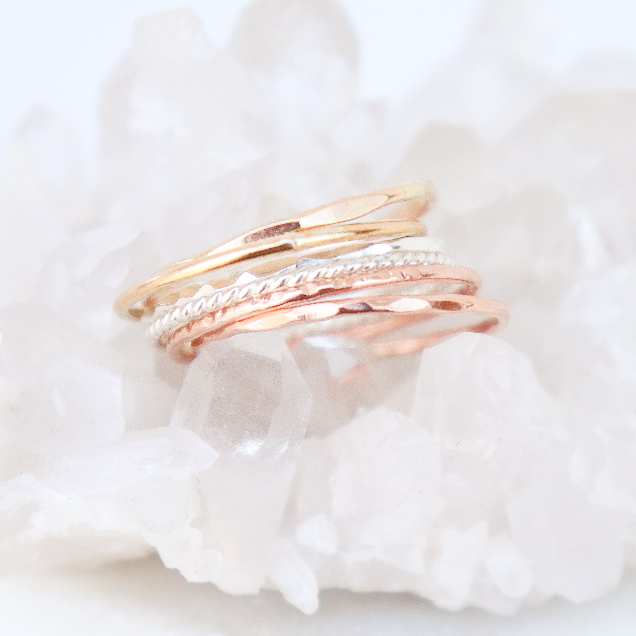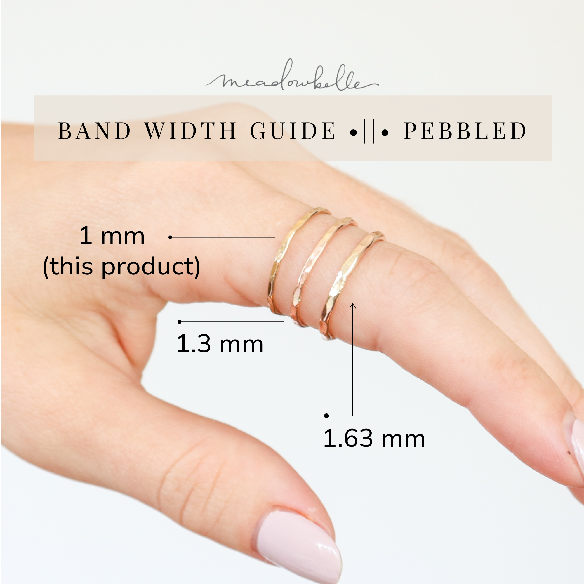 Our pebbled textured stackable ring adds sparkle to your stack; this one's in 14k palladium white gold. Explore all of our stackable rings, handmade to order in an array of precious metals. Stackable finger rings are just right for wearing alone, as a knuckle ring or as a set. Select this band in solid gold or platinum as a sleek wedding band!
