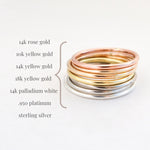Our pebbled textured stackable ring adds sparkle to your stack; this one's in solid platinum 950. Explore all of our stackable rings, handmade to order in an array of precious metals. Stackable finger rings are just right for wearing alone, as a knuckle ring or as a set. Select this band in solid gold or platinum as a sleek wedding band!