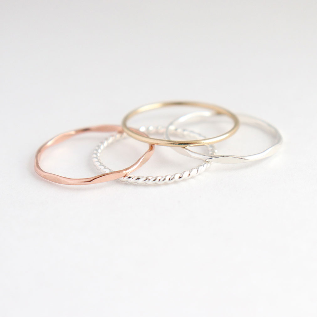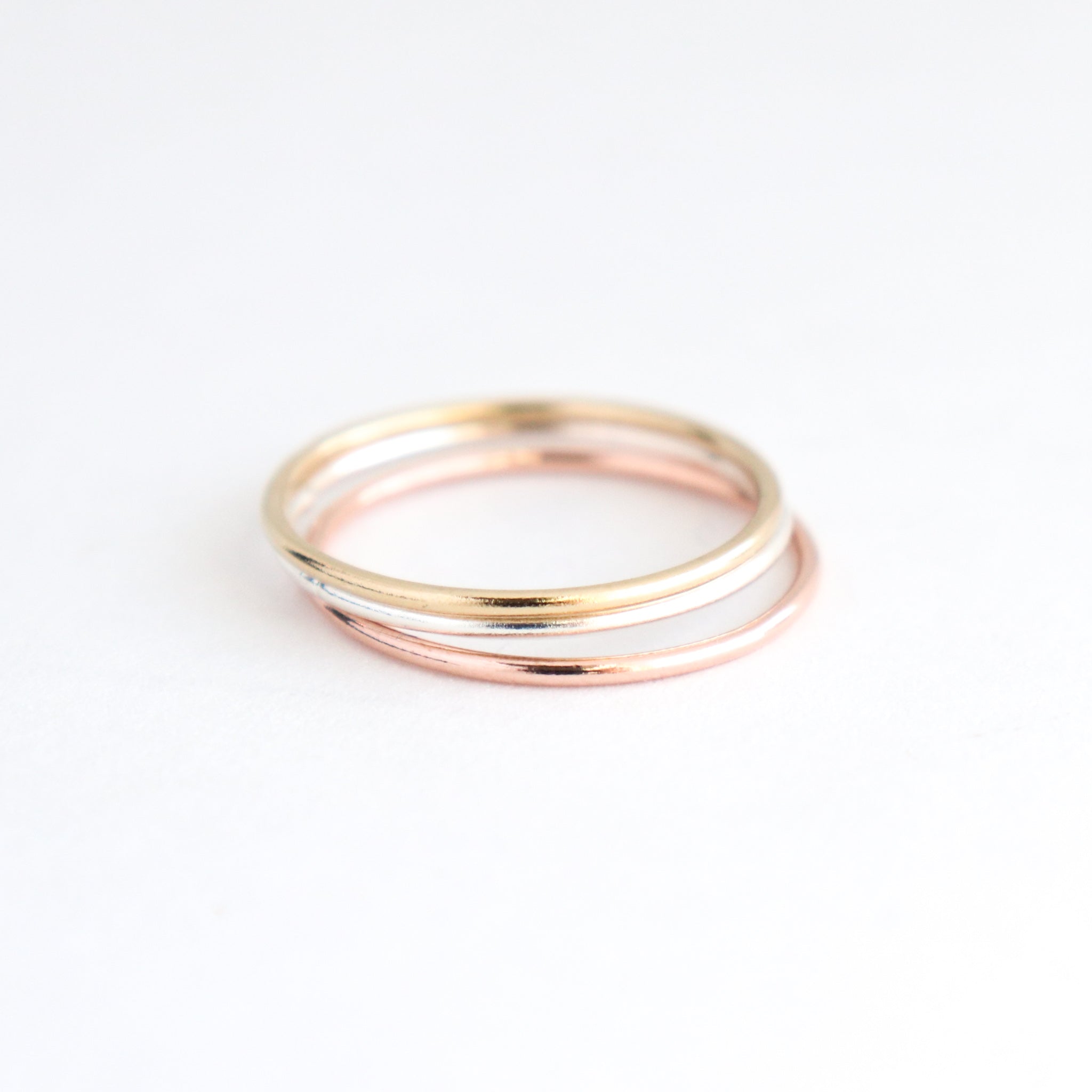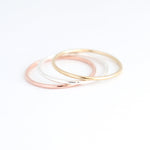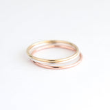 Minimalists rejoice over this smooth, dainty, 14k gold fill stacking ring. Explore all of our stackable rings, handmade to order in an array of precious metals. Stackable finger rings are just right for wearing alone, as a knuckle ring or as a set. Select this band in solid gold or platinum as a sleek wedding band!