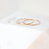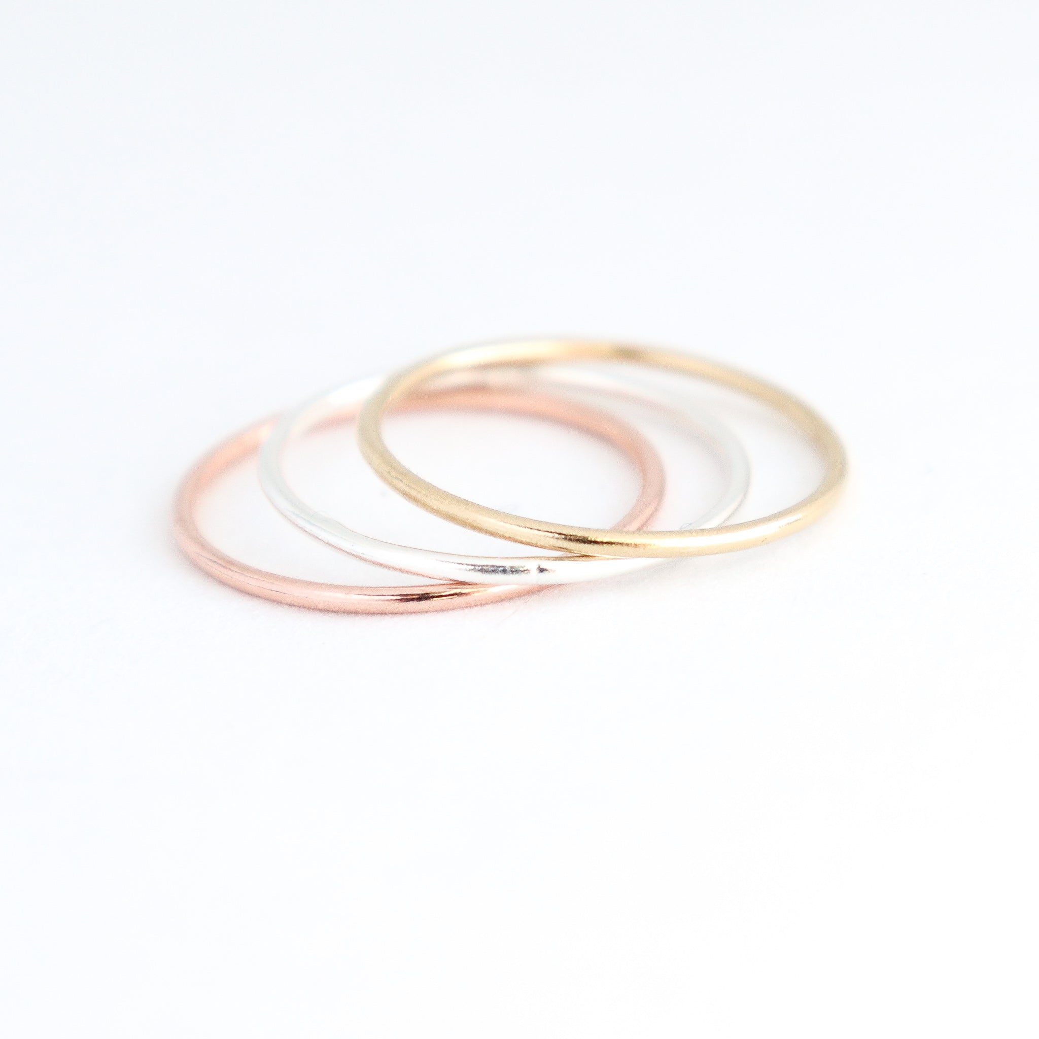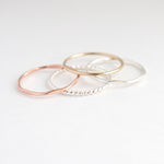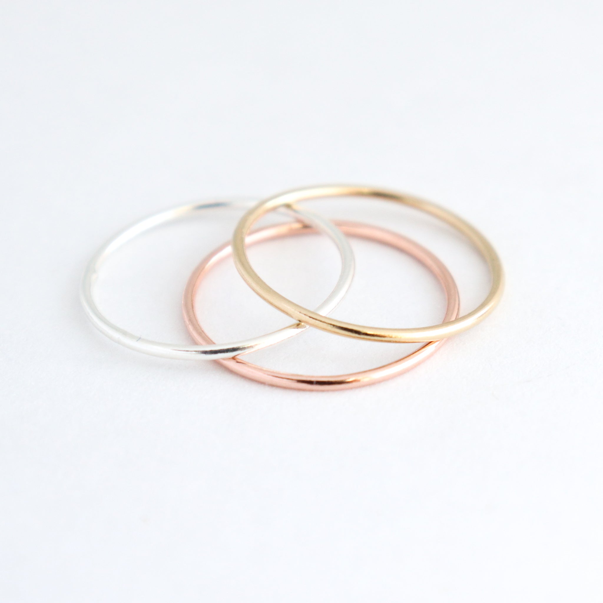 Minimalists rejoice over this smooth, dainty, solid 14k gold stacking ring. Solid gold is your up-leveled daily wear experience! For the forever minimalist at heart. Explore all of our stackable rings, handmade to order in an array of precious metals. Stackable finger rings are just right for wearing alone, as a knuckle ring or as a set. Select this band in solid gold or platinum as a sleek wedding band!