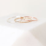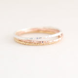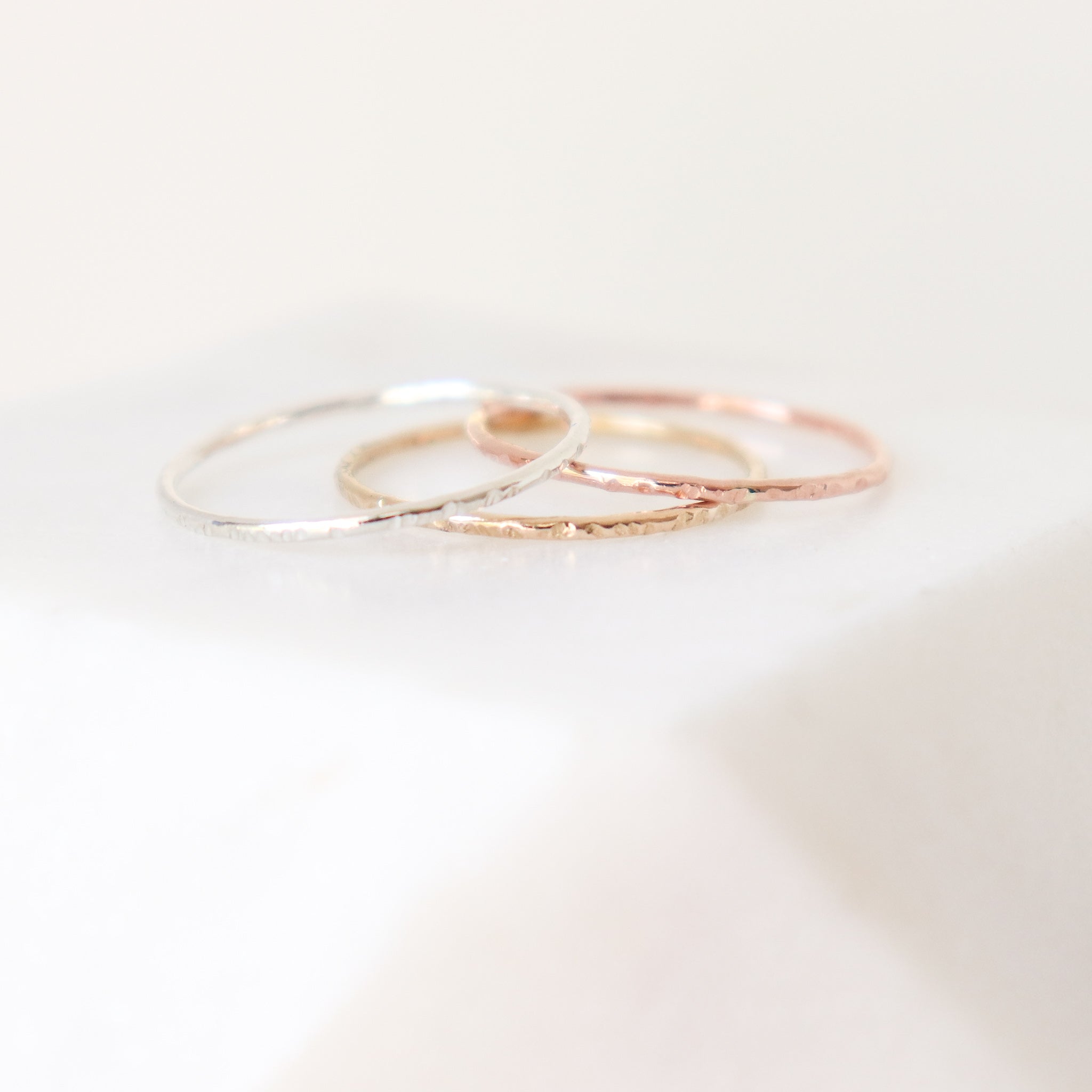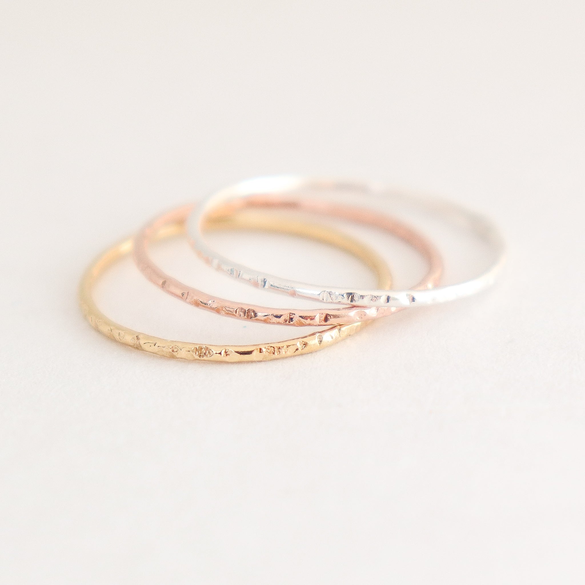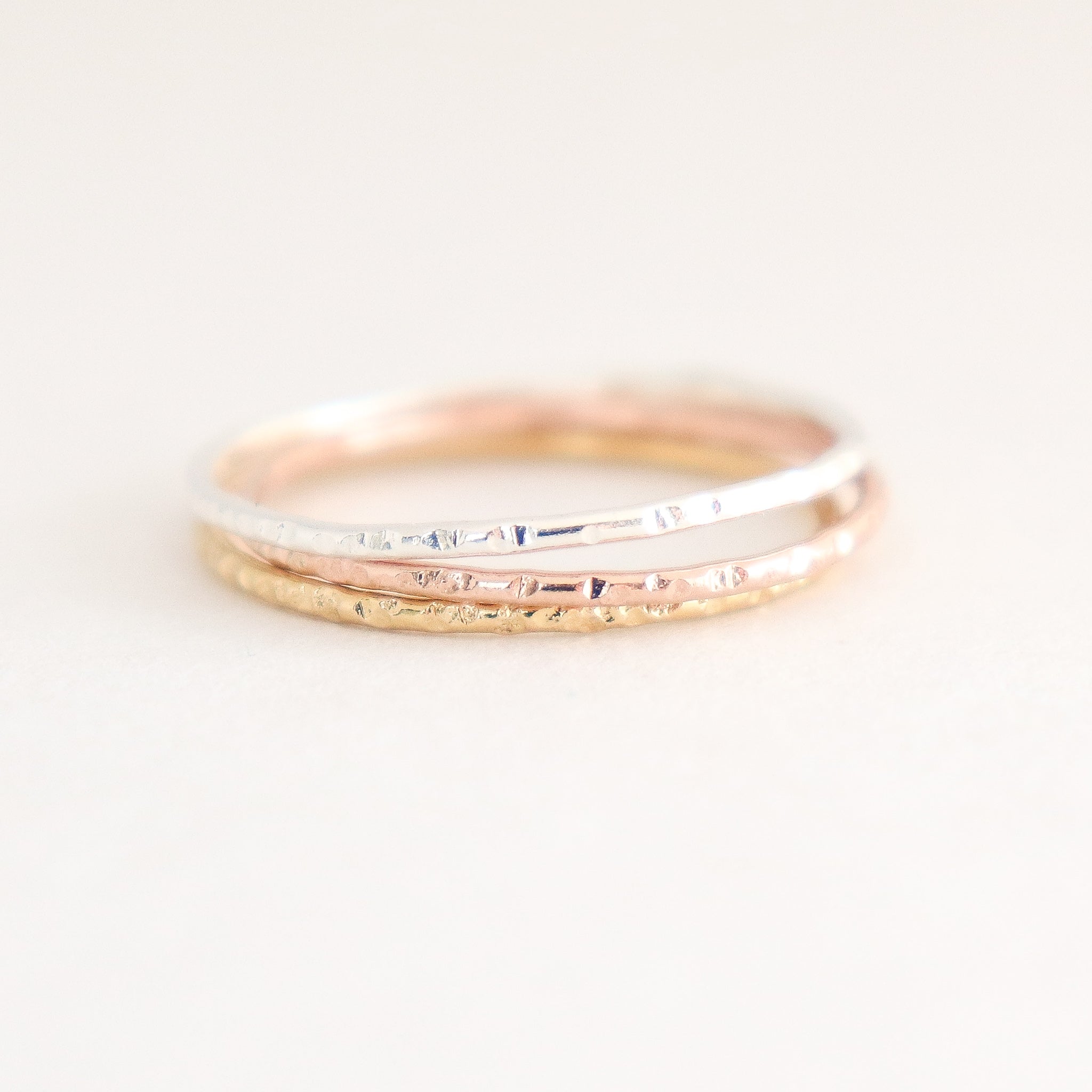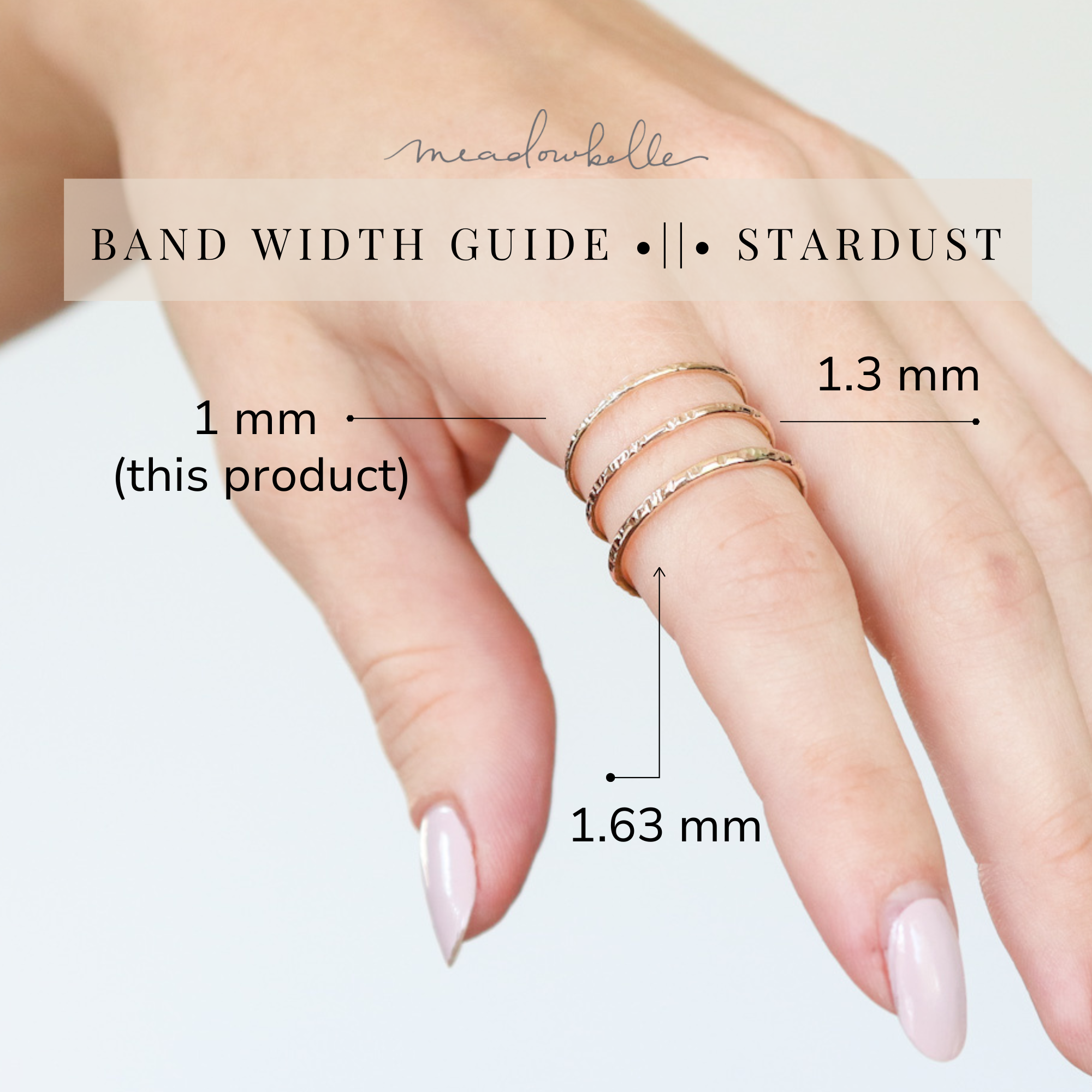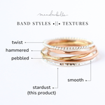 Our stardust textured stackable ring adds sparkle to your stack; this one's in 14k gold fill. Explore all of our stackable rings, handmade to order in an array of precious metals. Stackable finger rings are just right for wearing alone, as a knuckle ring or as a set. Select this band in solid gold or platinum as a sleek wedding band!