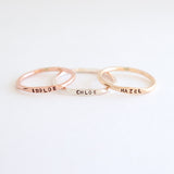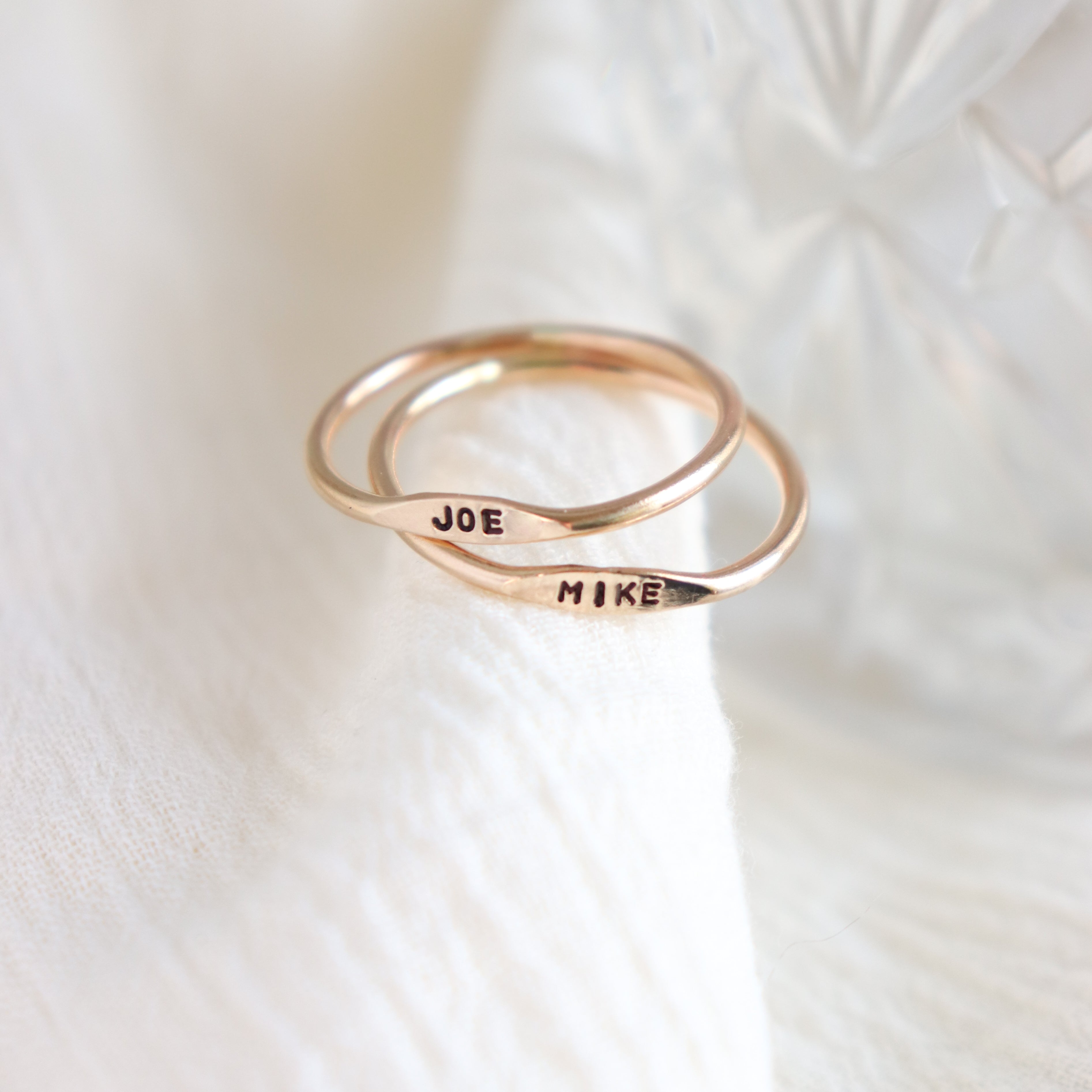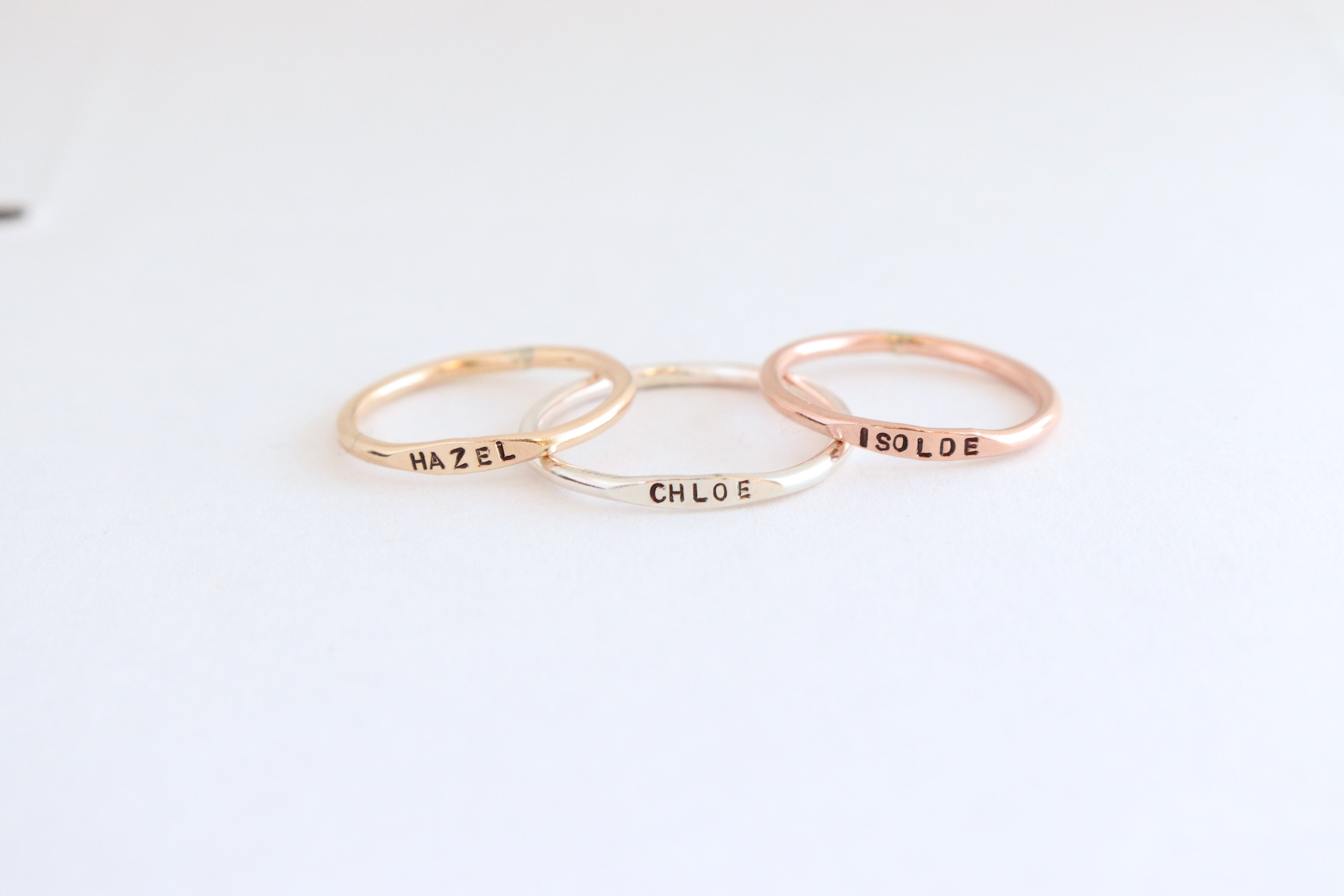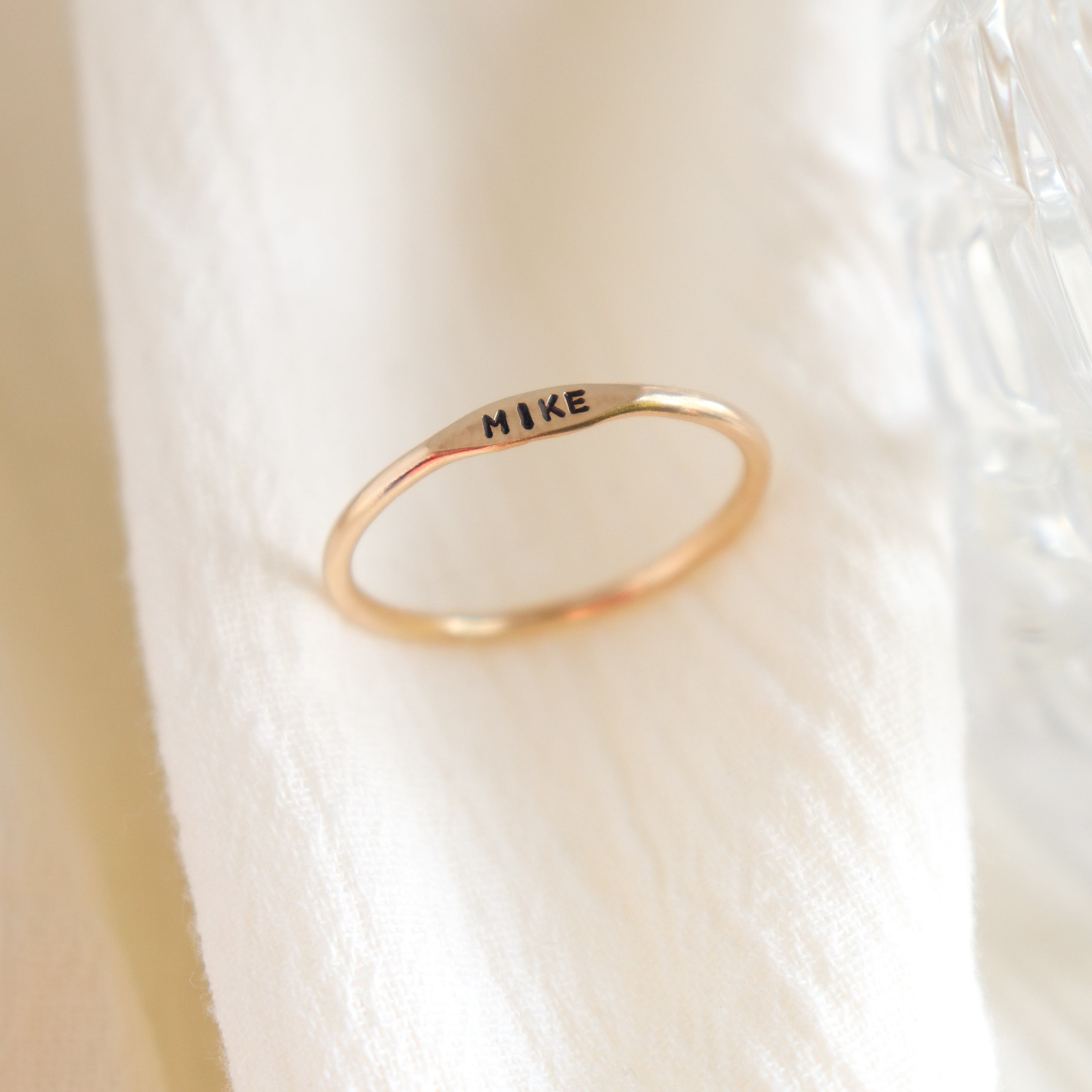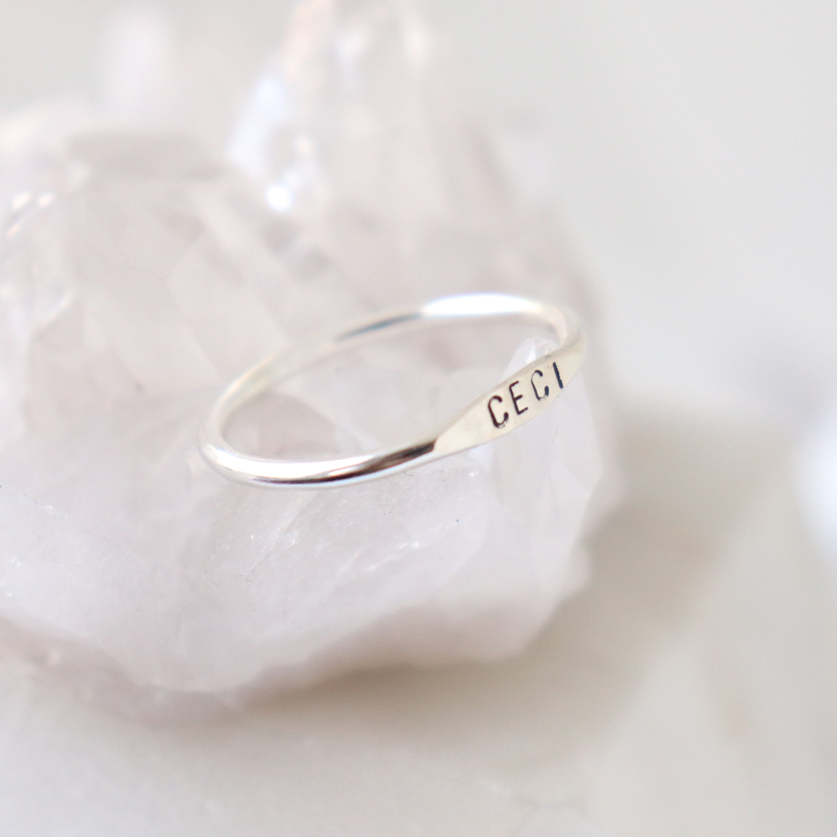 Personalize this minimalist yet substantial signet ring with the name, word or date of your choice! Or add a symbol - a heart for your love, a paw for your fur baby. Hand formed, soldered, hammered and stamped to order. Makes a sweet surprise for a new mama.